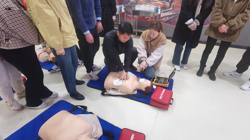 活動(dòng)中,現(xiàn)場(chǎng)人員共同參觀了紅十字培訓(xùn)中心,了解了基地建設(shè)情況及主要內(nèi)涵,以及應(yīng)急救護(hù)、逃生、創(chuàng)傷救護(hù)等主要流程,沉浸式學(xué)習(xí)了心肺復(fù)蘇術(shù)。在生命科學(xué)館,在場(chǎng)人員通過觀察標(biāo)本的肌肉、骨骼、神經(jīng)及血管網(wǎng)絡(luò),加深了對(duì)人體構(gòu)造的理解和認(rèn)識(shí)。