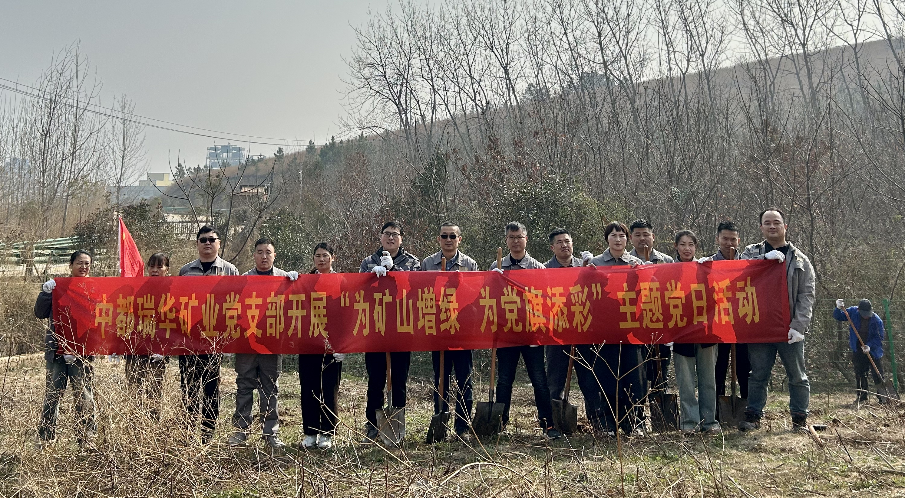 為進(jìn)一步突出黨建引領(lǐng),彰顯黨員干部的責(zé)任擔(dān)當(dāng),提高公司職工的環(huán)保意識(shí),3月12日,中都瑞華黨支部組織開展“為礦山增綠為黨旗添彩”主題黨日活動(dòng)。