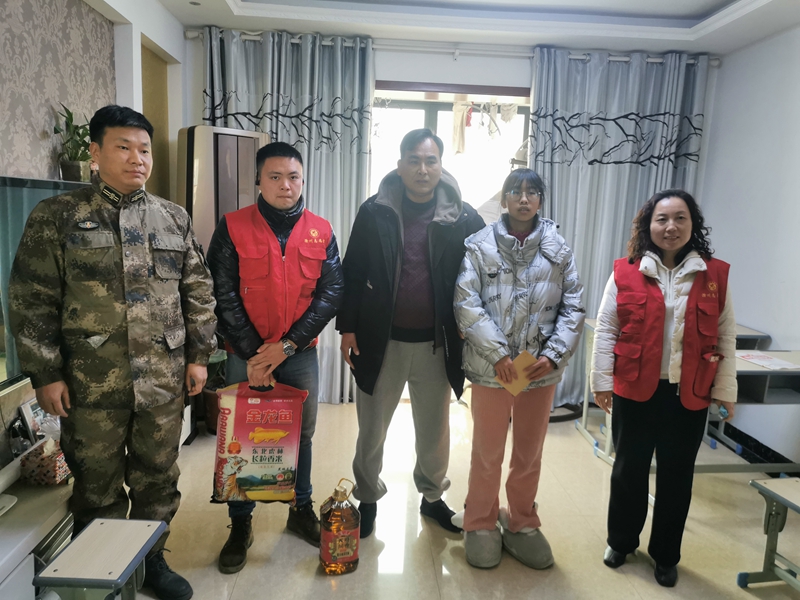 春節(jié)前夕,公司領(lǐng)導(dǎo)帶領(lǐng)青年黨員志愿者前往發(fā)能國際城社區(qū),慰問困難軍人家庭。