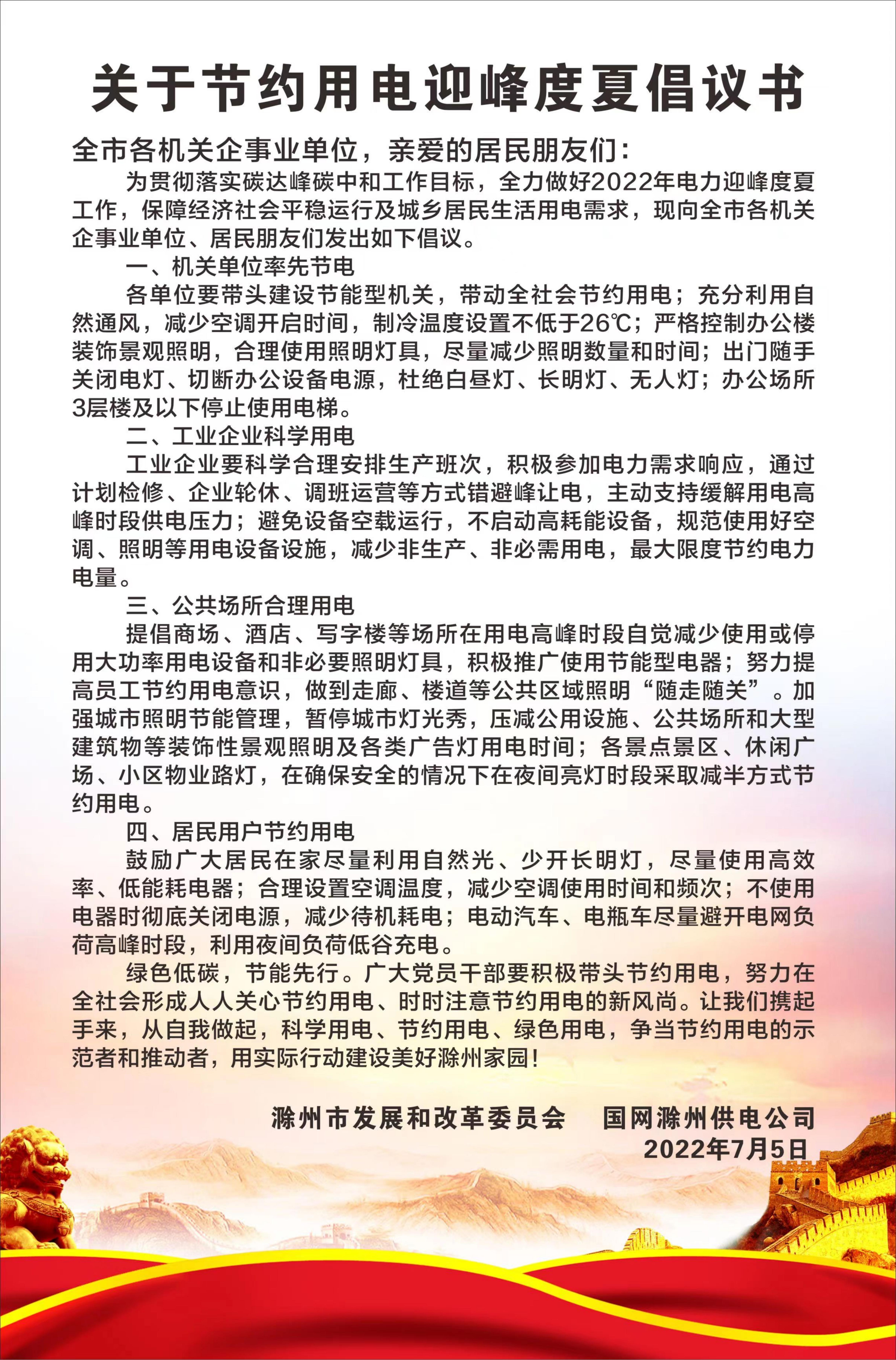 關(guān)于節(jié)約用電迎峰度夏倡議書(shū)