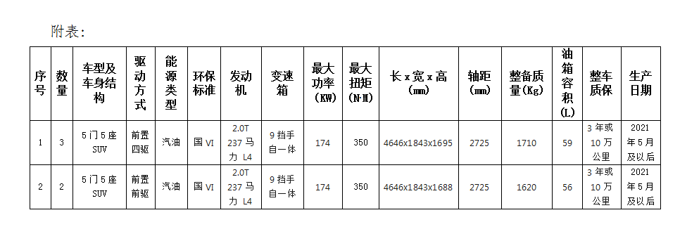 根據(jù)業(yè)務(wù)發(fā)展需要,滁州市興元商貿(mào)有限公司擬集中采購業(yè)務(wù)保障車輛共計5輛,詳情見附表。