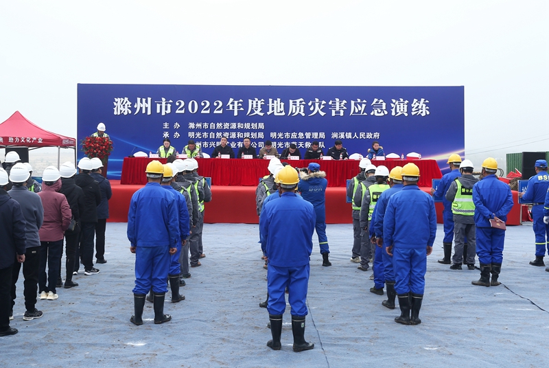 為進一步做好地質(zhì)災(zāi)害防治工作,提高廣大人民群眾對突發(fā)地質(zhì)災(zāi)害的應(yīng)急反應(yīng)能力,強化防災(zāi)避災(zāi)意識。11月18日上午,滁州市2022年度地質(zhì)災(zāi)害應(yīng)急演練在滁州市興明礦業(yè)巢東礦區(qū)舉行,滁州市自然資源和規(guī)劃局地質(zhì)礦產(chǎn)管理科科長孫忠民、生態(tài)修復(fù)科科長朱慶濤,明光市應(yīng)急管理局局長王大虎,明光市自然資源和規(guī)劃局副局長張宗建,澗溪鎮(zhèn)人民政府副鎮(zhèn)長孟慶德參加,滁州市各縣區(qū)自然資源和規(guī)劃部門礦政、生態(tài)修復(fù)管理人員45人應(yīng)邀到場觀摩。