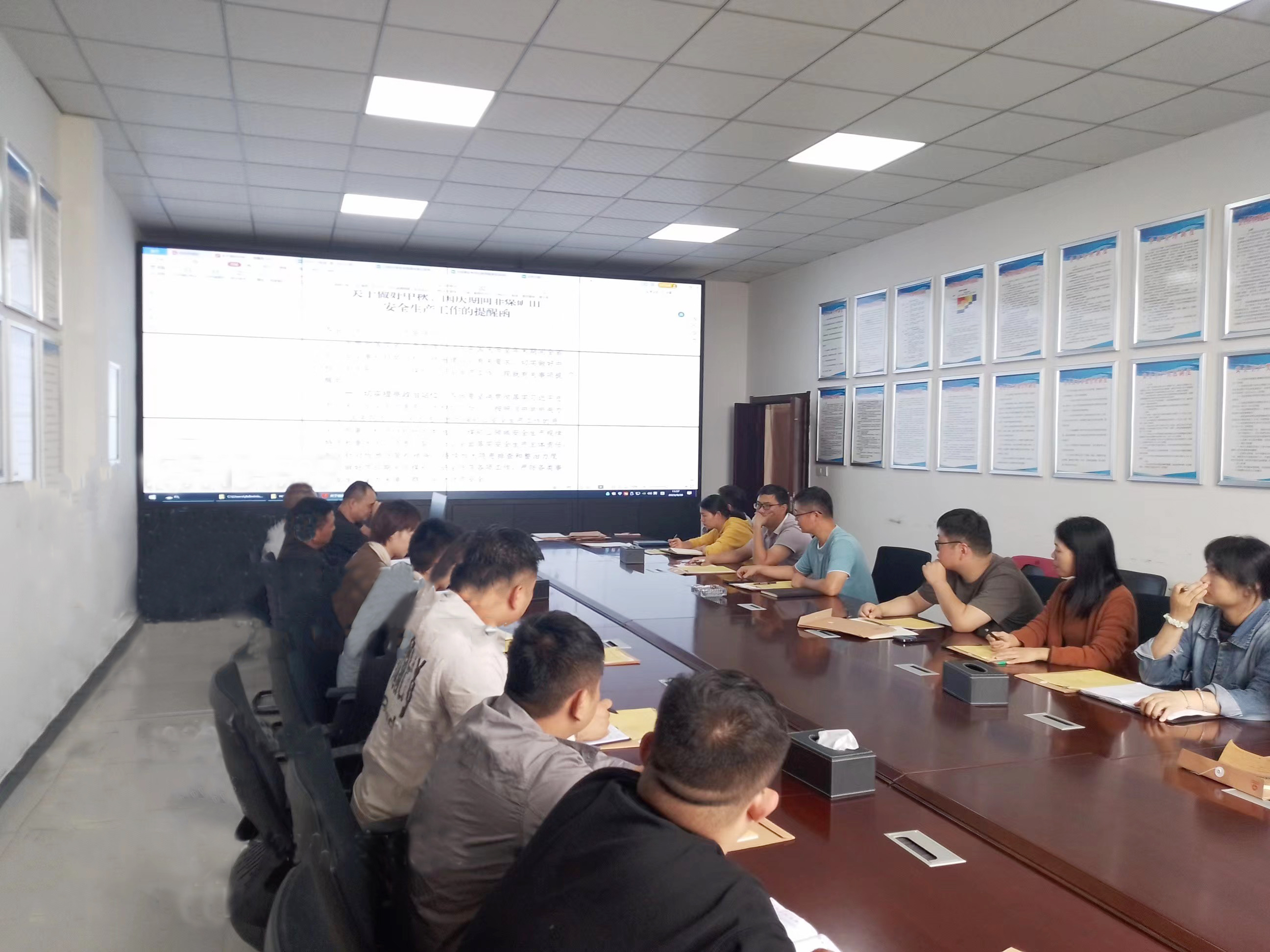 為保障礦區(qū)安全生產(chǎn),2023年9月28日“中秋·國慶”前夕,中都瑞華公司主要負(fù)責(zé)人莢德軍組織全體員工學(xué)習(xí)滁州市應(yīng)急管理局《關(guān)于做好中秋、國慶期間非煤礦山安全生產(chǎn)工作的提醒函》,對節(jié)日期間安全生產(chǎn)工作提出相關(guān)要求:一是要注意節(jié)假日期間交通運輸安全、用電安全、防火等安全問題,二是應(yīng)急值守值班人員值班期間要加強礦區(qū)安全巡查,重點關(guān)注施工人員現(xiàn)場作業(yè)是否規(guī)范佩戴安全防護措施,登高作業(yè)審批手續(xù)是否完善等。三是強調(diào)務(wù)必把各項安全措施抓實、抓細(xì)、抓到位。